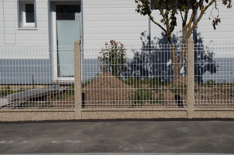 Poteau soubassement plaque graviers lavés 4 faces tête diamant, pour grillage nylofor betafence de 63 cm, 103cm, 123cm, 153cm.